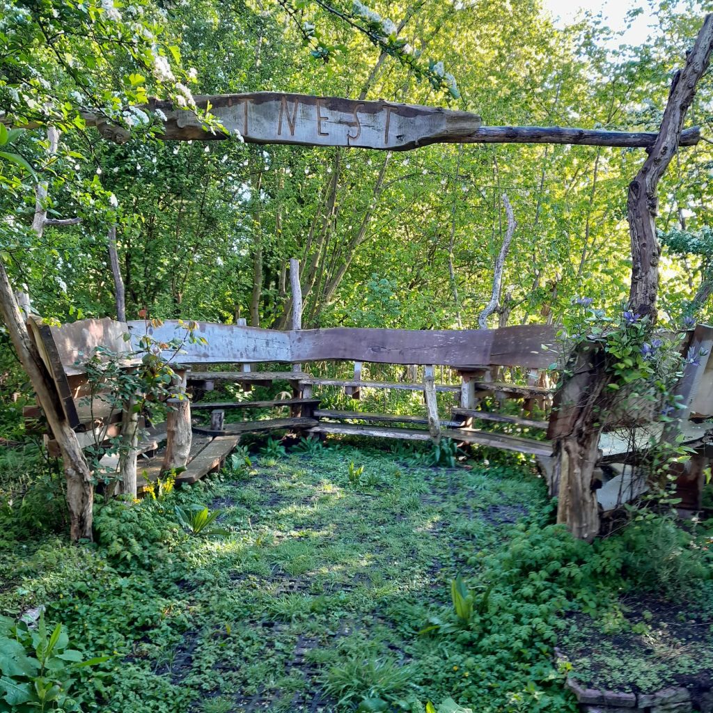 Ontdek onze tuin, kinderen spelen heerlijk in de zandbak, spelen op het klankorgel of geniet van de rust in ’t Nest.